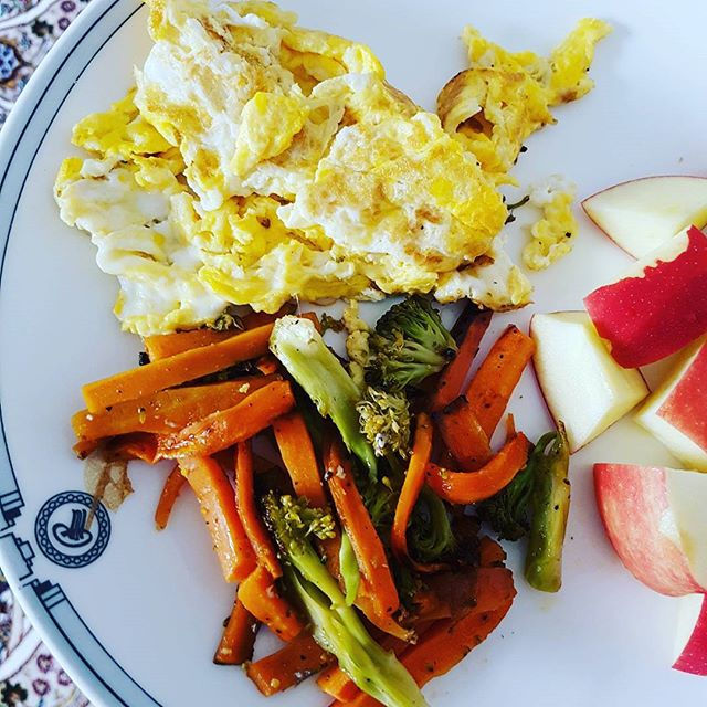 (min frokost i dag, litt rester, litt frukt og egg såklart)