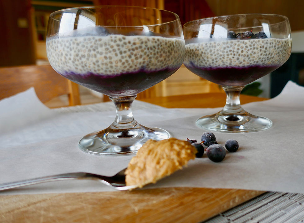 Nesten som dessert: Chiapudding med peanøttsmør og blåbærkompott